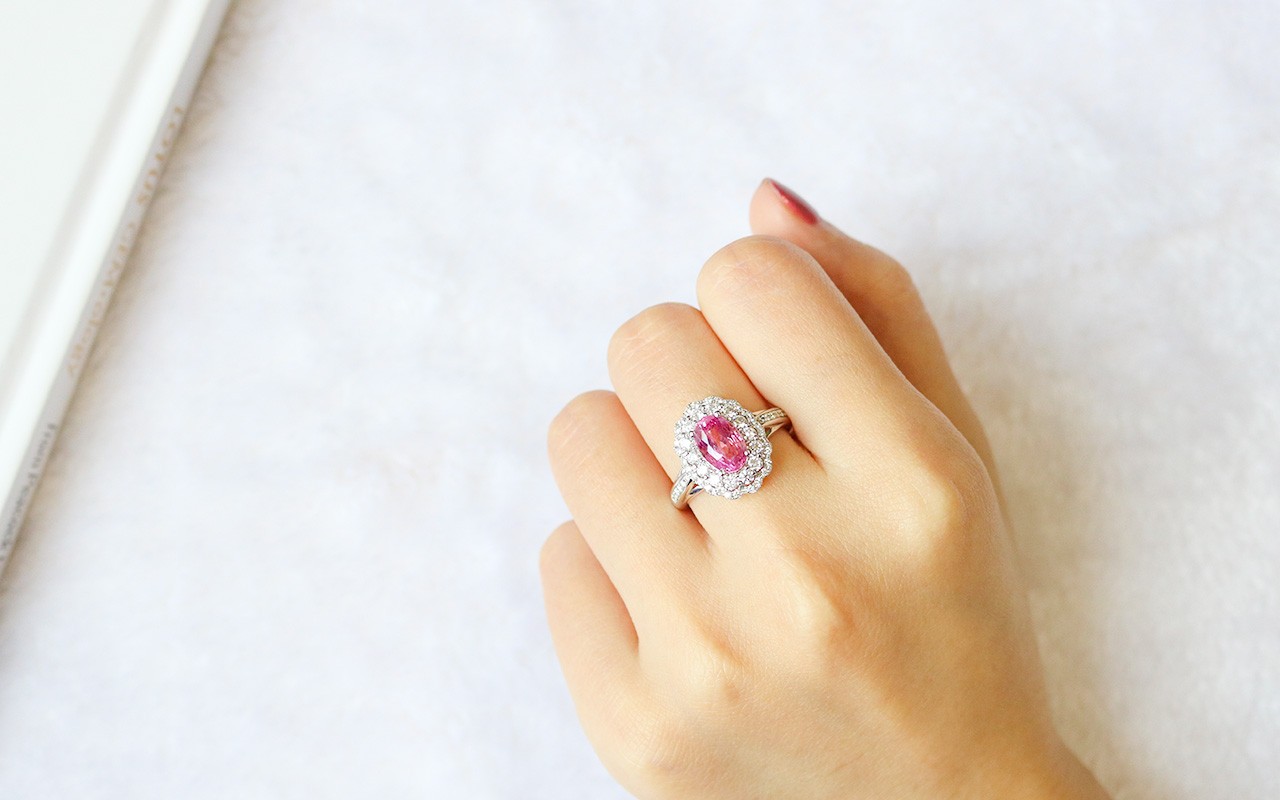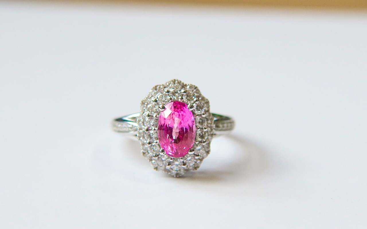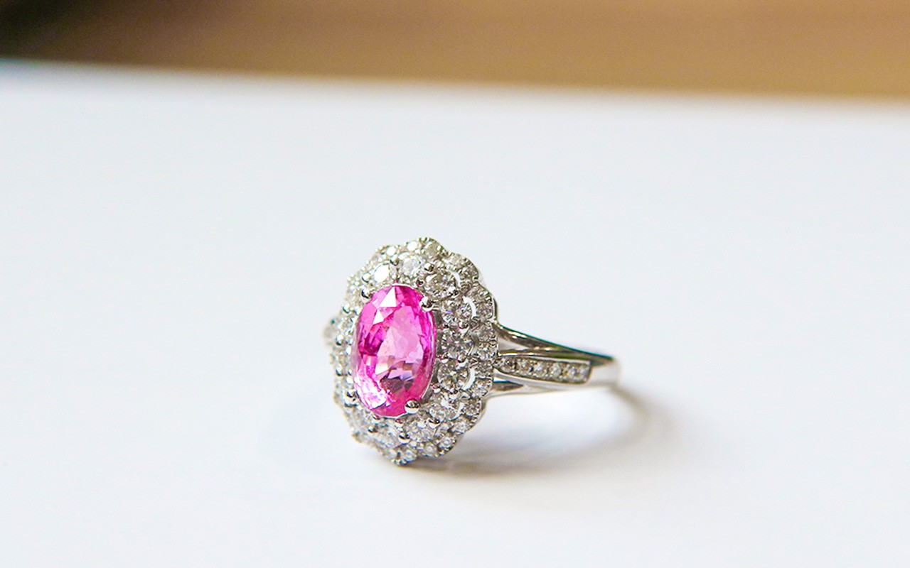 粉色蓝宝石戒指2.09ct,配钻共0.92ct