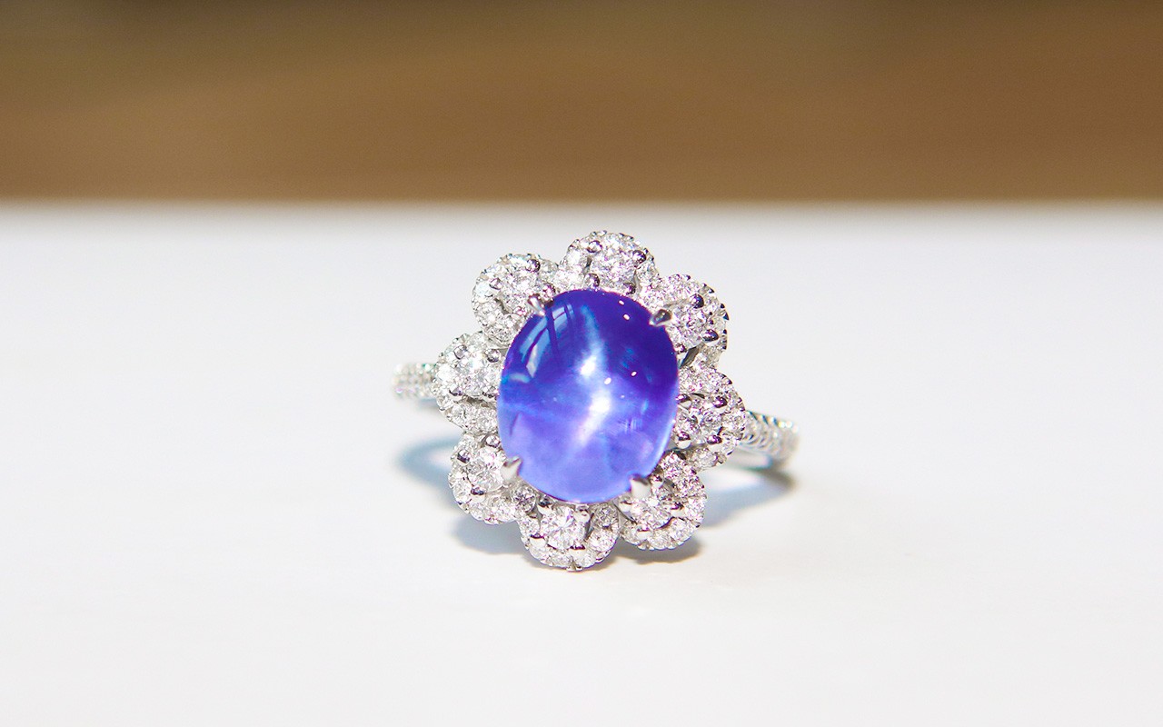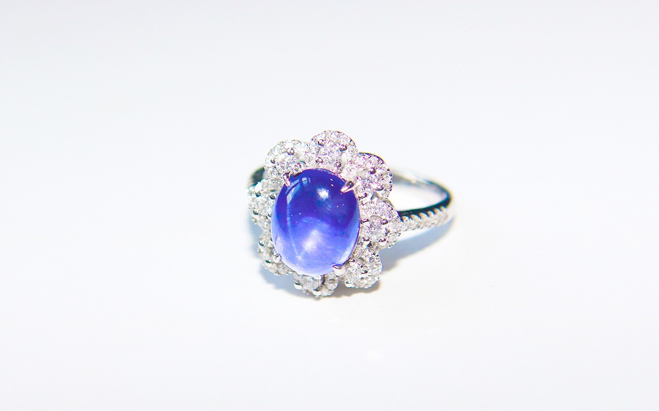 星光蓝宝石也称星彩蓝宝石,因为内涵物带来了星光但减小了宝石的透明度,所以星光蓝宝石通常是半透明至透明的,且此时宝石的表面浮现出一种类似绸缎般的绢丝质感,非常迷人。