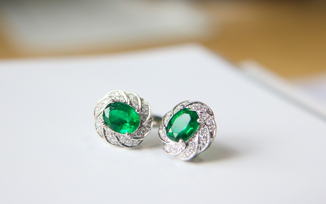 18K祖母绿耳钉,主石两粒共计2.84ct