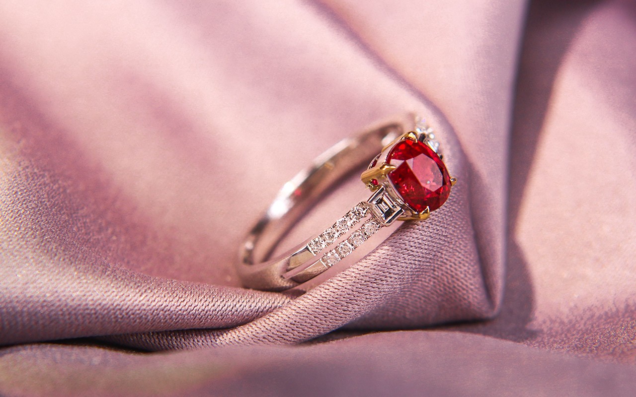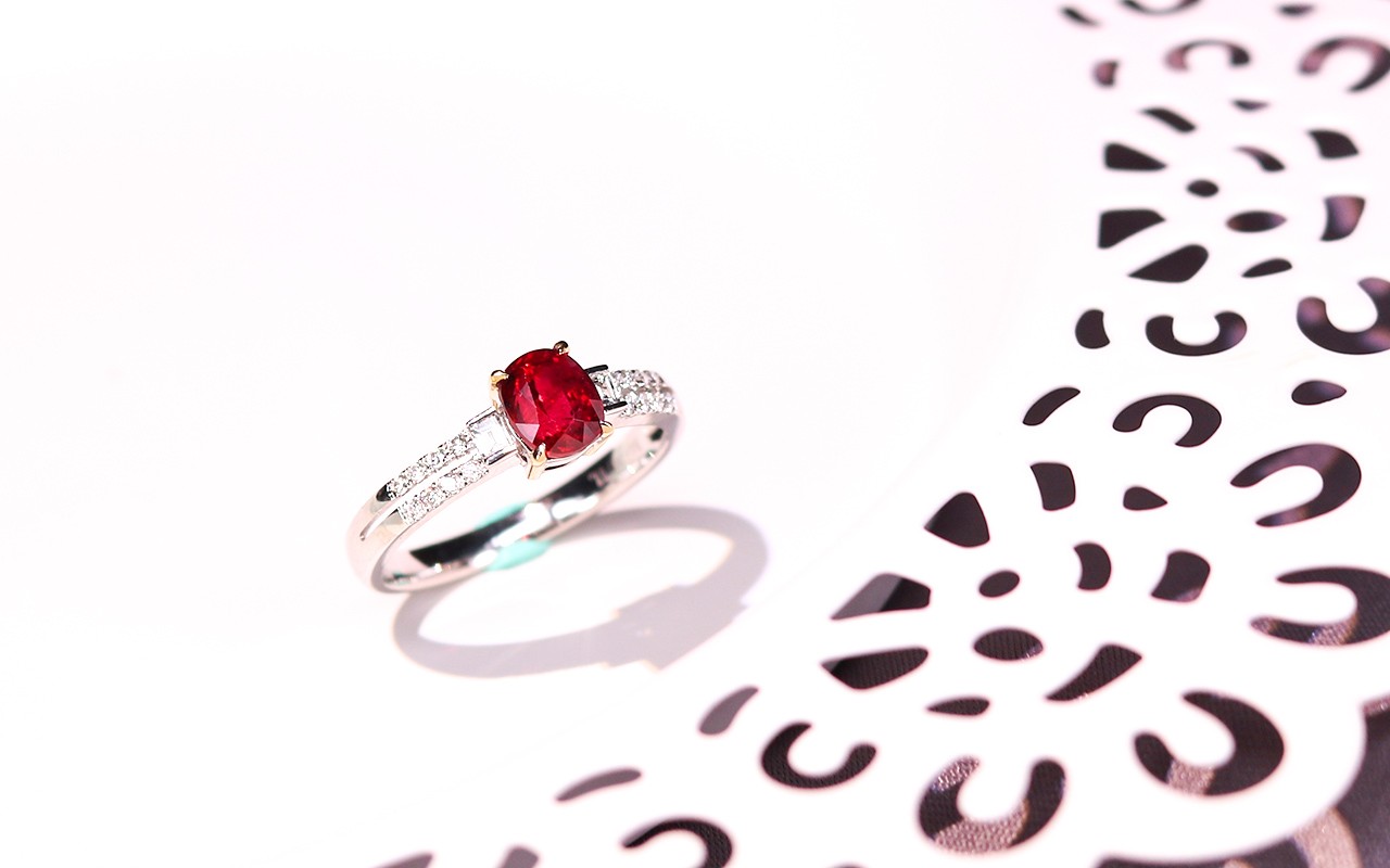 红宝石戒指所散发出来的暖暖的红色热情和活力给女性增添女王范儿,与女性洁白的肤色相配更加透露出浓浓的女人味儿。