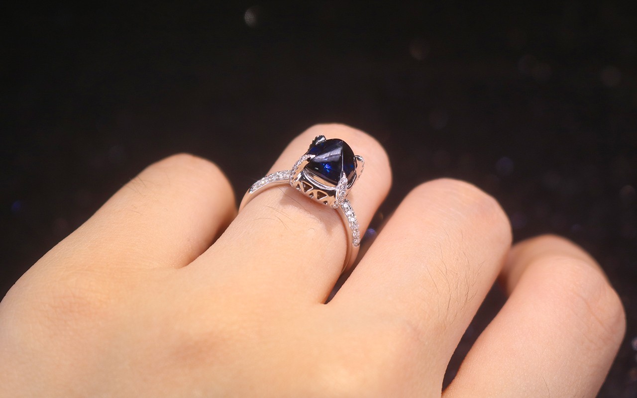 斯里兰卡很少产出皇家蓝宝石,所以遇到一颗真的很不容易,而这颗斯里兰卡天然无烧皇家蓝糖塔蓝宝石又采用了糖塔的切割方式,比起常见的刻面宝石,糖塔宝石虽然舍弃了耀眼的火彩,但是将晶莹剔透的晶体更加突出。从另一个角度来看,晶体内部被完全暴露在人眼前,对宝石本身的品质要求是极高的,意味着它必须无瑕且高净。