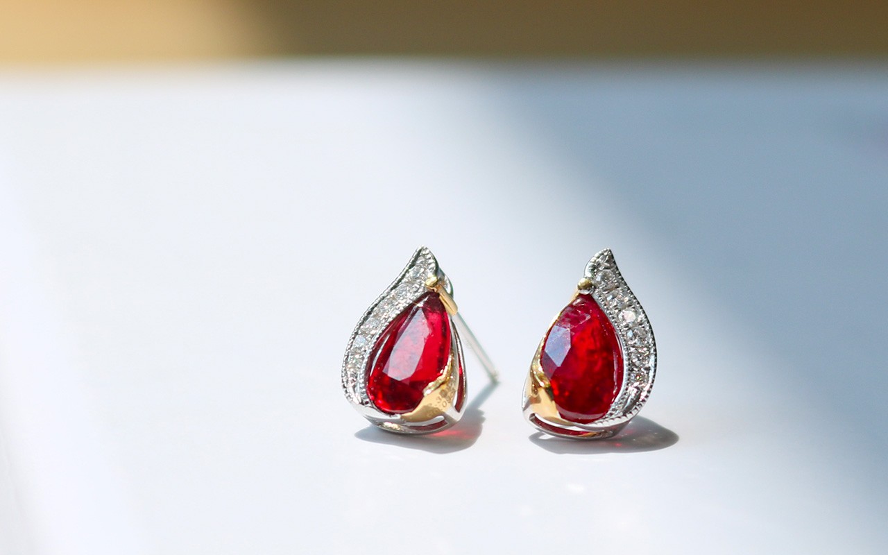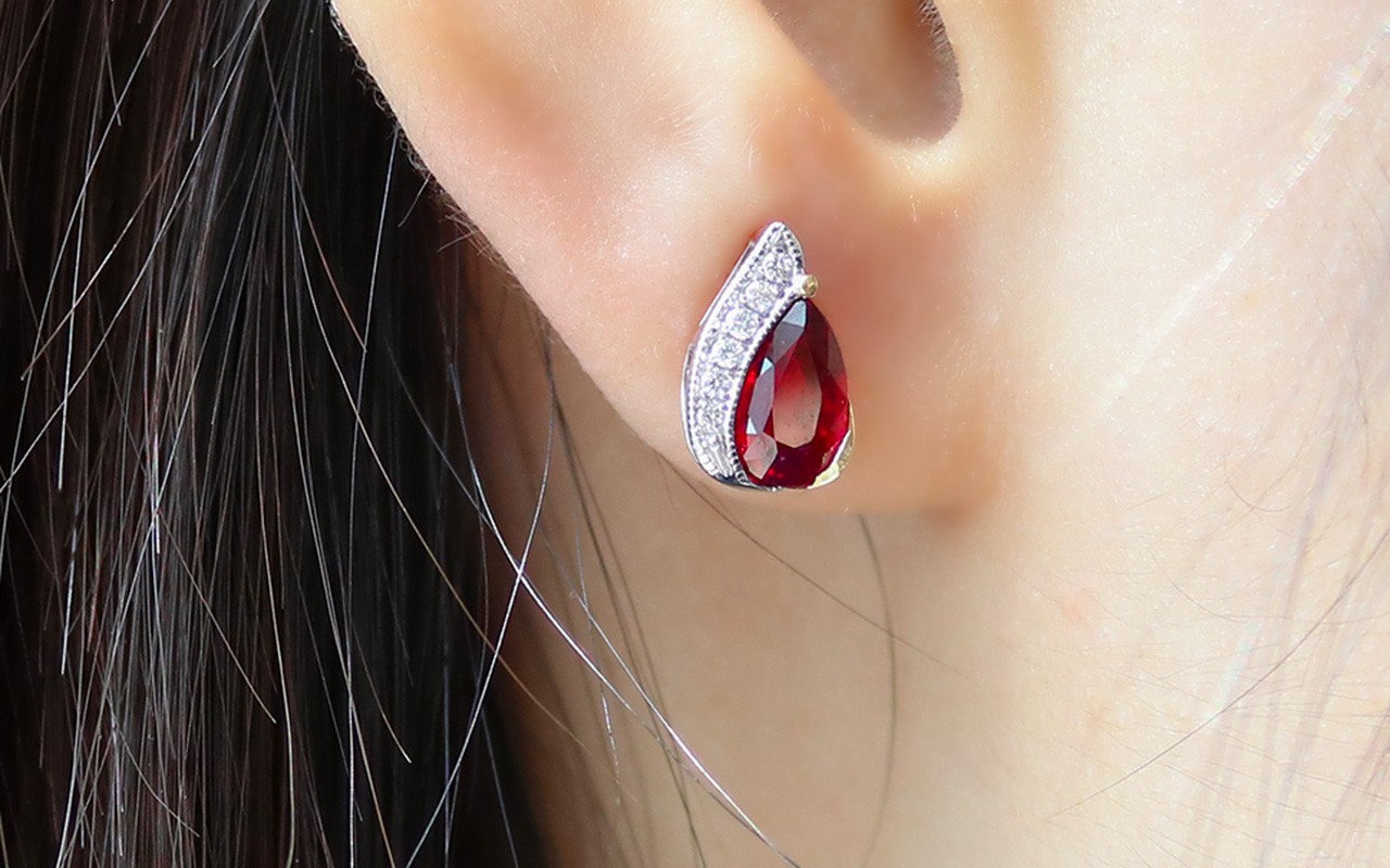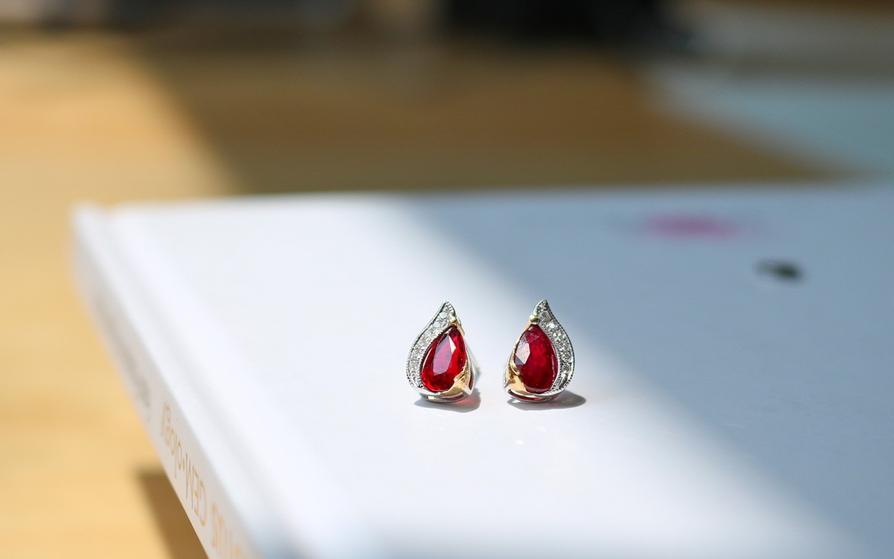 无烧鸽血红红宝石耳钉,主石2.34ct